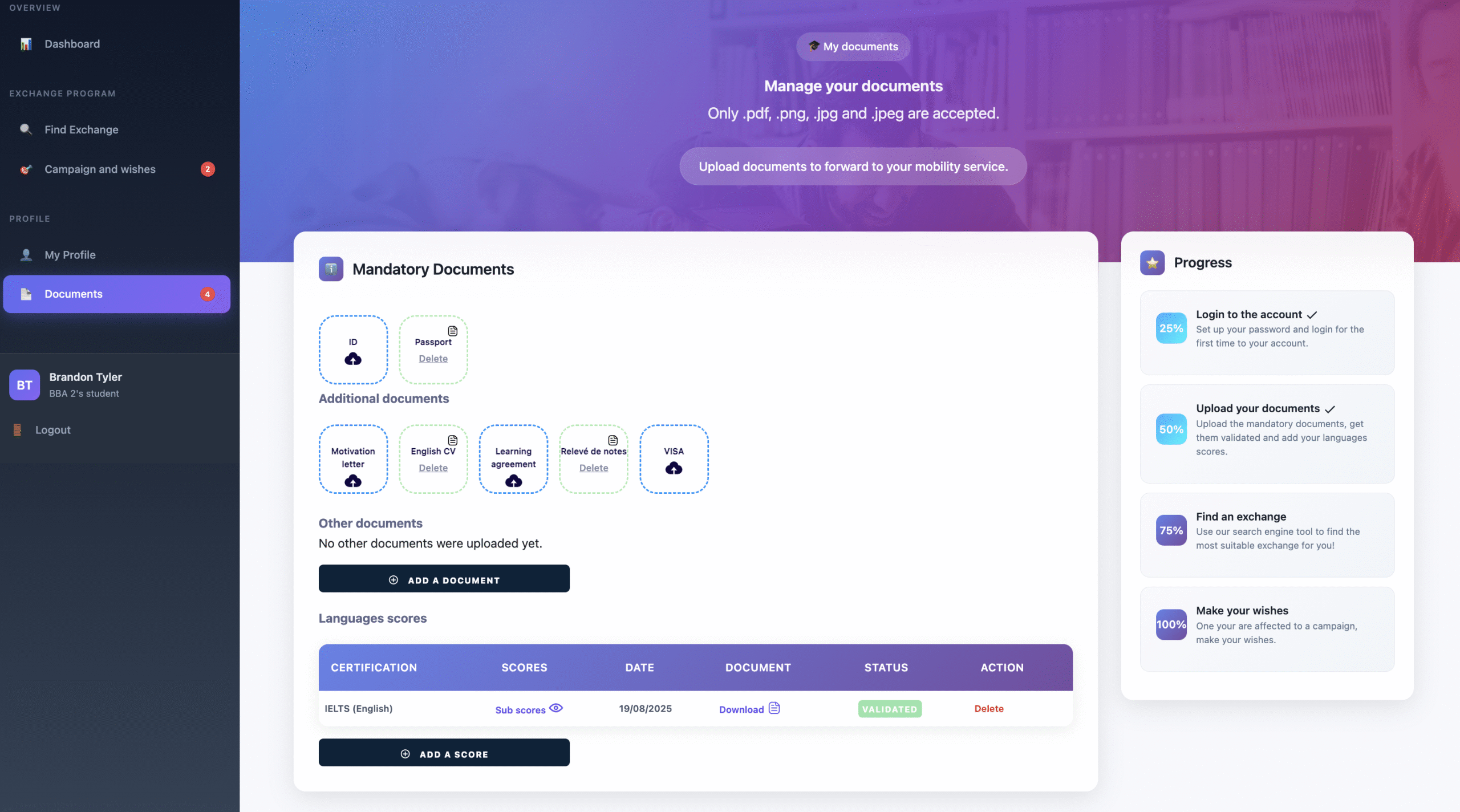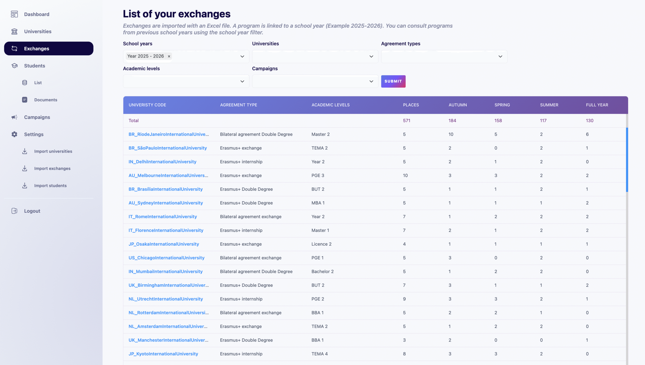 The idea for the platform was born in the field: through our own experiences with international mobility, we realized just how complex, sometimes frustrating, and often disorganized the student journey could be. So we decided to create a tool designed by and for users — a bridge between students, institutions, and data, so that every exchange opportunity becomes a fully managed success.